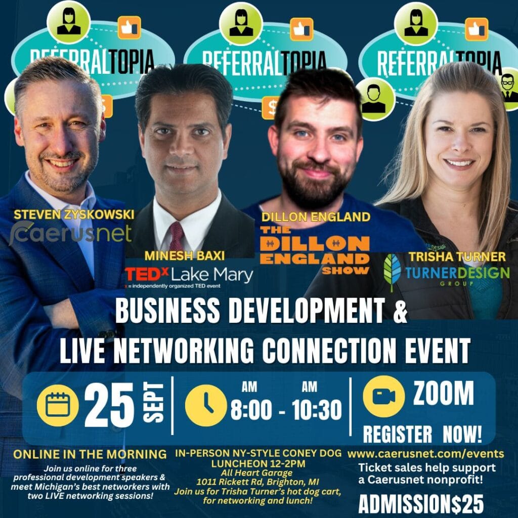 ReferralTopia 9.25.2025 proved that when relationship-minded small-business owners come together with a spirit of generosity, Business Networking transforms into something more than exchanging cards- it becomes collaboration, learning, and growth. Hosted by Caerusnet founder, Steven Zyskowski,, this year’s hybrid gathering brought members and guests from across the region to learn, share, and strengthen the referral-based network that fuesl local business growth.